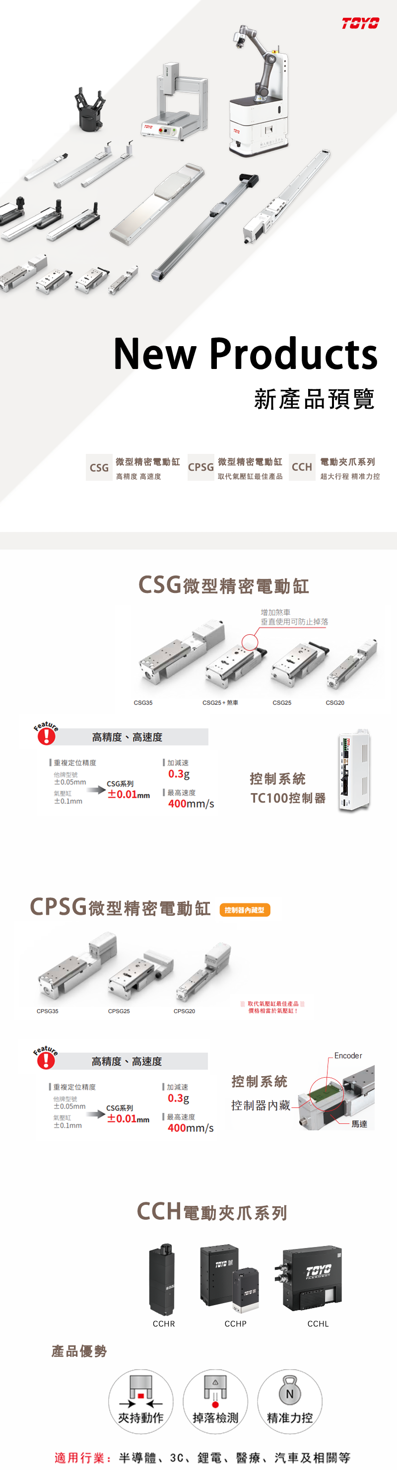 710jc7公海集团成立于2000年,我们凭借着“超越客户需求”的理念,用心投入自动化机器人相关领域的研发与创新,并快速获得广大客户的认同与采用。TOYO710jc7公海直线传动主要包括六大产品:滑台模组、电动缸、线性马达机械手、电动夹爪、桌上型机械手、无人搬运车。在与人们生活息息相关的各种制造里,都可以看到TOYO710jc7公海机械手技术活用的应用范例。包括IT产业、半导体、医药、食品、手机、汽车、航天等产业。因应您的需求,提供最适合的产品,更贴近您的生活。